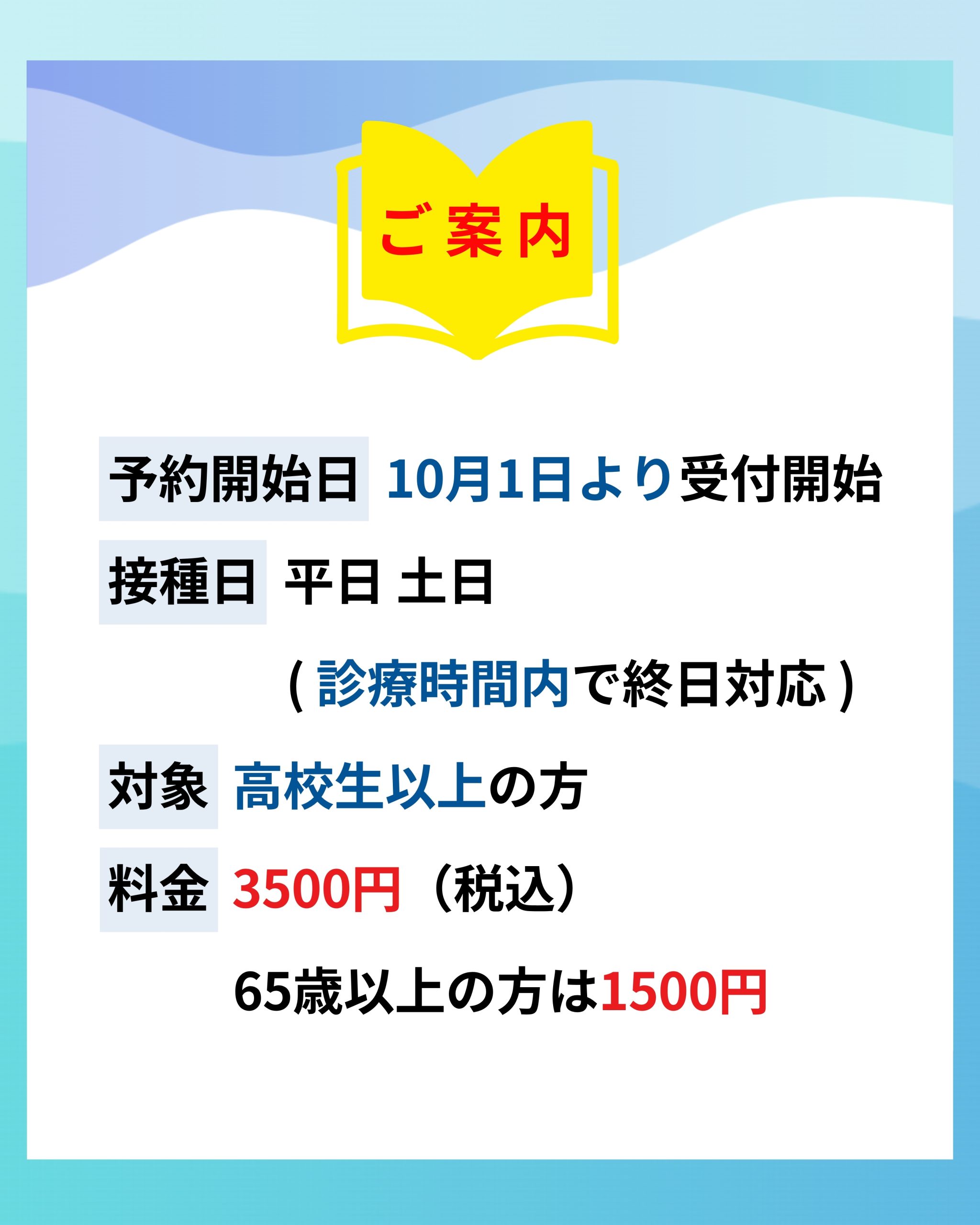 10月1日よりインフルエンザワクチン予防接種の受付を開始します。